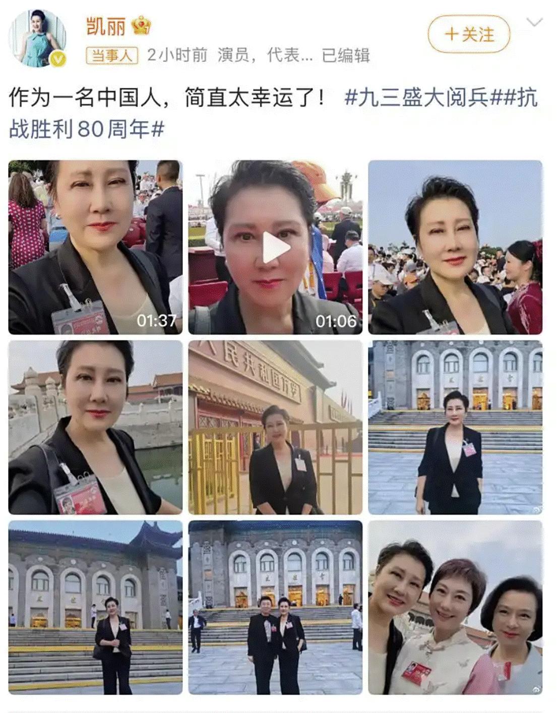 在閱兵現場,有着很多的受邀觀衆,演藝圈中的名人也有不少,其中就有作爲第十四屆政協委員張凱麗。