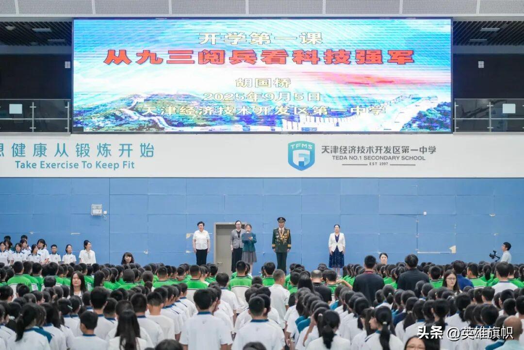閱兵式的激昂旋律仍在迴盪,校園裏的愛國樂章已然奏響。9月5日,泰達一中舉行隆重的“愛我中華 強國有我”開學典禮,剛剛從紀念中國人民抗日戰爭暨世界反法西斯戰爭勝利80週年大會現場觀禮歸來的原陸軍某研究室主任、研究員胡國橋大校受邀登上講臺,用親歷者的視角、奮鬥者的情懷、守護者的擔當爲全體師生帶來一場穿透心靈的愛國主義教育“開學第一課”,讓紅色基因在校園裏紮根,讓強國夢想在學子心中啓航。