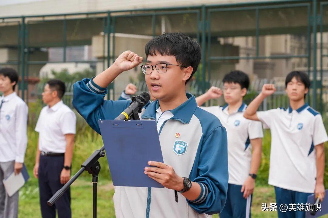 典禮現場,泰達一中的學子們整齊肅立、高舉右拳,嘹亮的誓言響徹校園上空,每一句鏗鏘的承諾都如驚雷般震撼人心 —— 這不僅是對新學期奮鬥目標的莊嚴宣告,更是對 “強國有我” 使命的堅定應答。