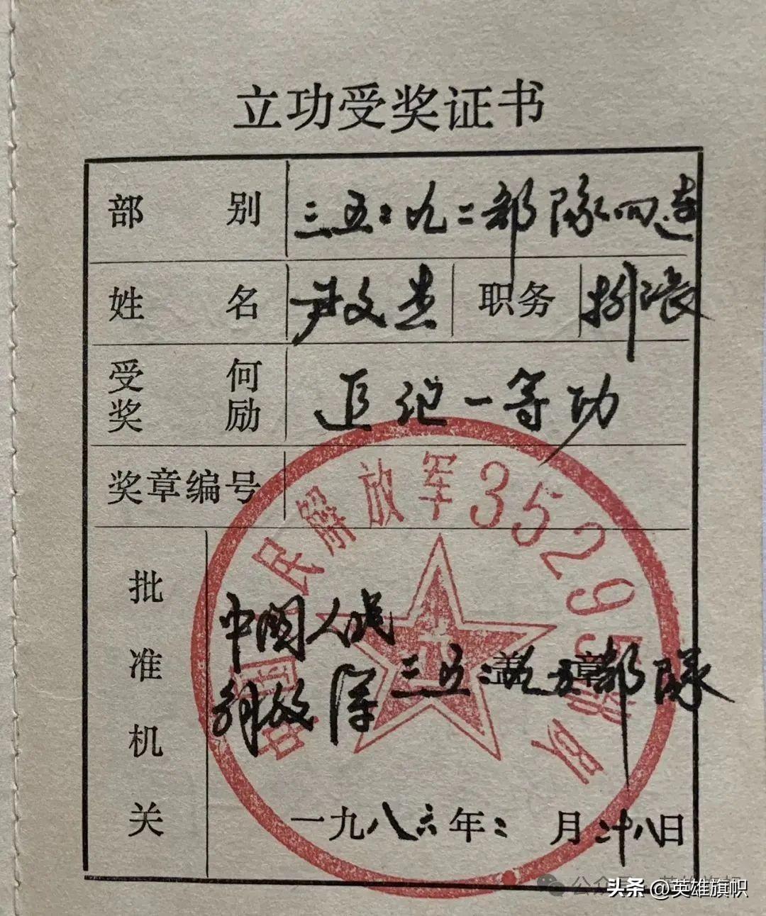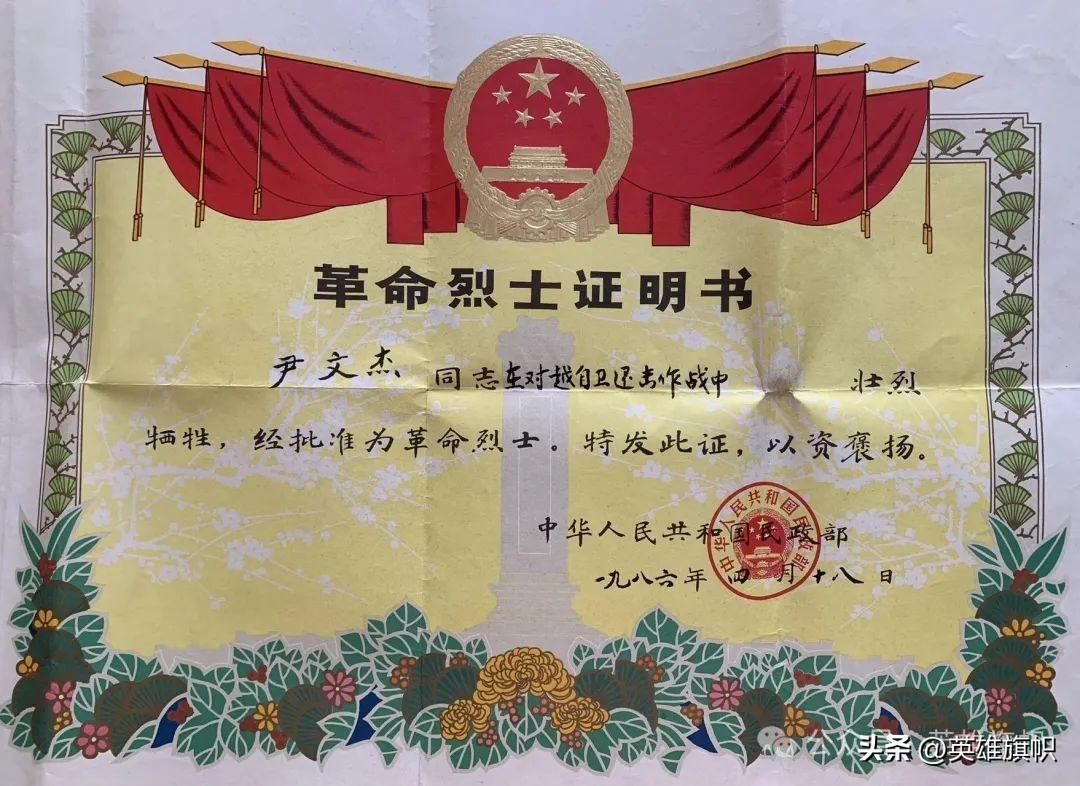 尹文傑立功證書上事蹟簡介這樣記載:尹文傑同志1979年曾參加過對越自衛還擊戰,戰後被選送濟南陸軍學校入校深造。1981年9月以優秀成績畢業。幾年來,他熱愛自己的本職,忠於職守,模範作用強。赴滇執行輪戰任務後,他作戰勇敢。指揮果斷,先後帶領全排粉碎敵人15次偷襲和連排規模的進攻,全排取得斃敵五名,傷敵兩名的戰績。尹文傑與戰士同甘共苦,關心戰士疾苦,他積極做好戰士的思想工作,找戰士談心140多人次,他爲搶救戰友獻出了年輕的生命。