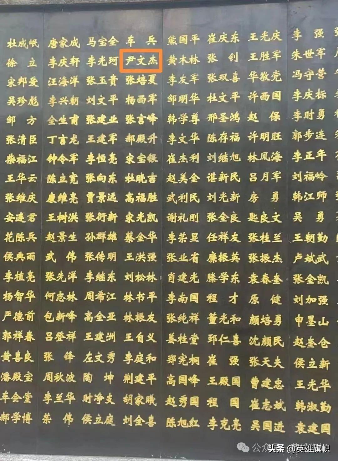 上圖:尹文傑烈士的名字鐫刻在麻栗坡烈士陵園紀念廣場英烈牆本張圖片第4組第2行