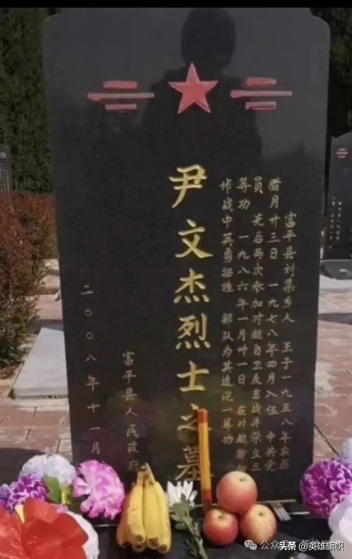 上圖:陝西省富平縣烈士陵園內尹文傑烈士墓碑(尹婷提供)