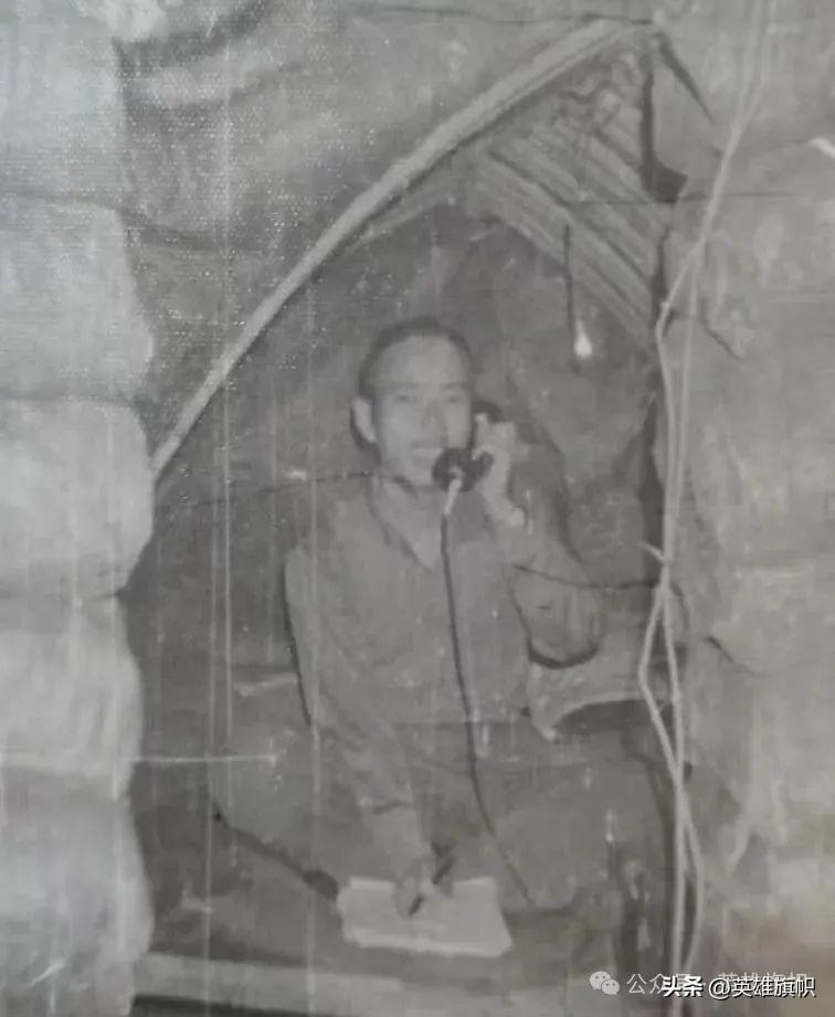上圖:尹文傑在老山前線陣地上用電話指揮戰鬥(尹婷提供)