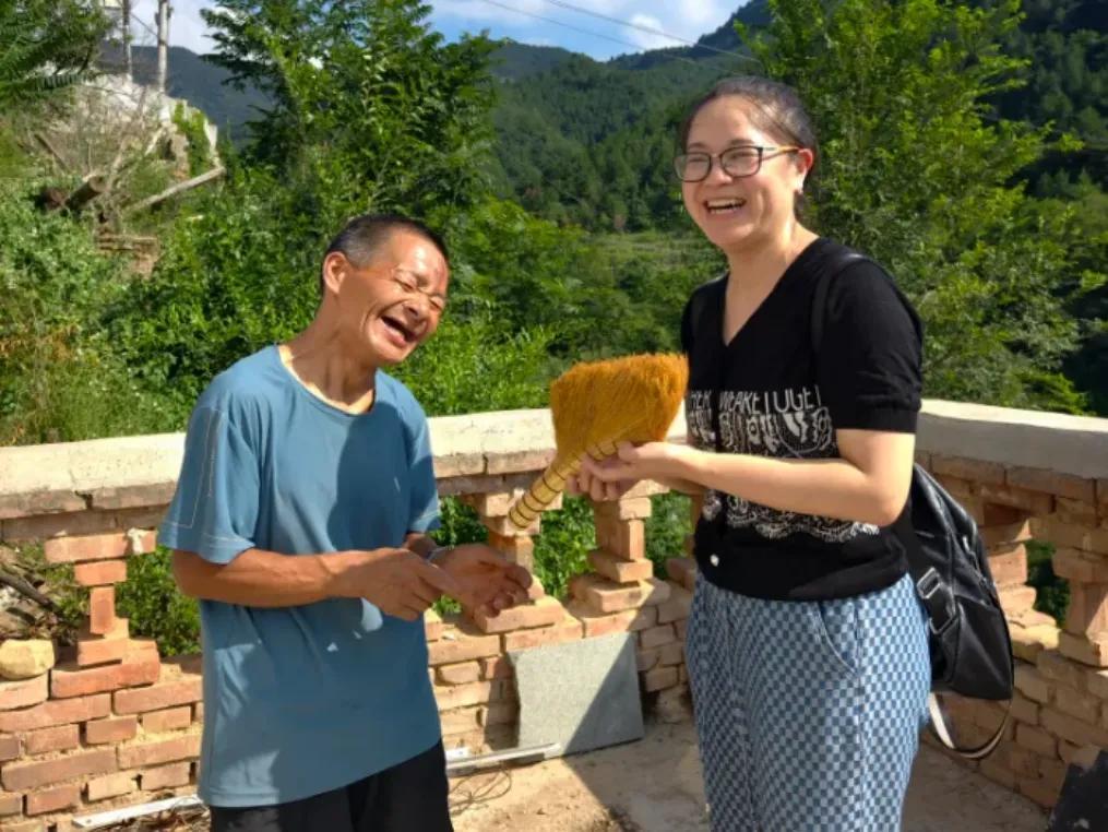 海松向山西日報記者陳麗紅贈送親手做的笤帚