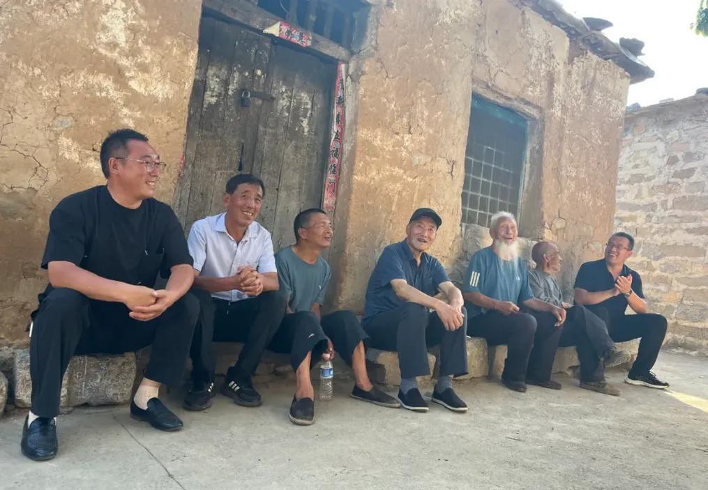 海松和鄉長宇文傑(右一),三任村支書桑春玉(左四)、申廣軍(左二)、宋光平(左一),輪值戶桑明玉(右三)及村民在一起