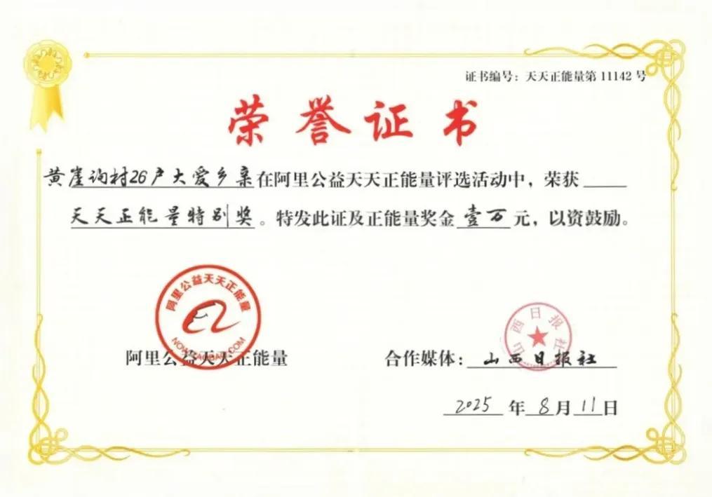 阿里公益天天正能量聯合山西日報用一份特別獎,向鄉親們致敬,致敬鄉土中國裏的善意與溫情。