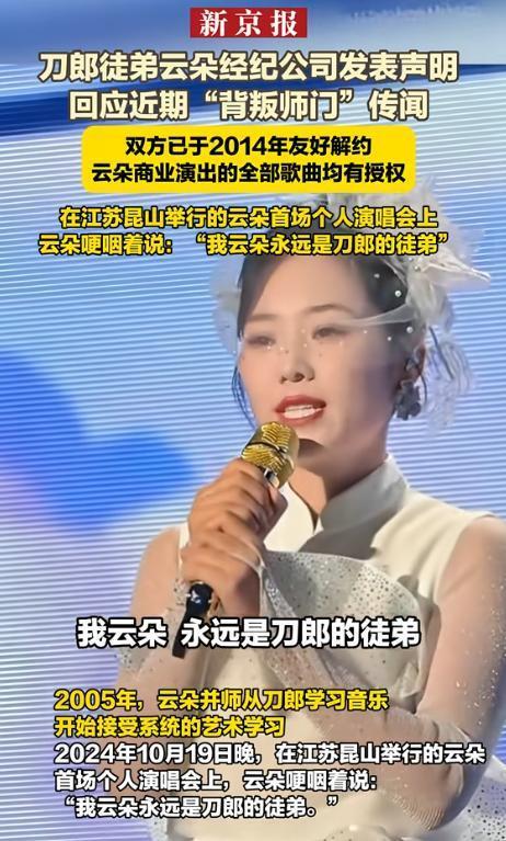 刀郎始終沒有正面回應這些爭議,只是通過公司發佈聲明,雲朵一邊強調“永遠是刀郎的徒弟”,一邊在演唱會上宣傳自己的演出,態度顯得有些矛盾。