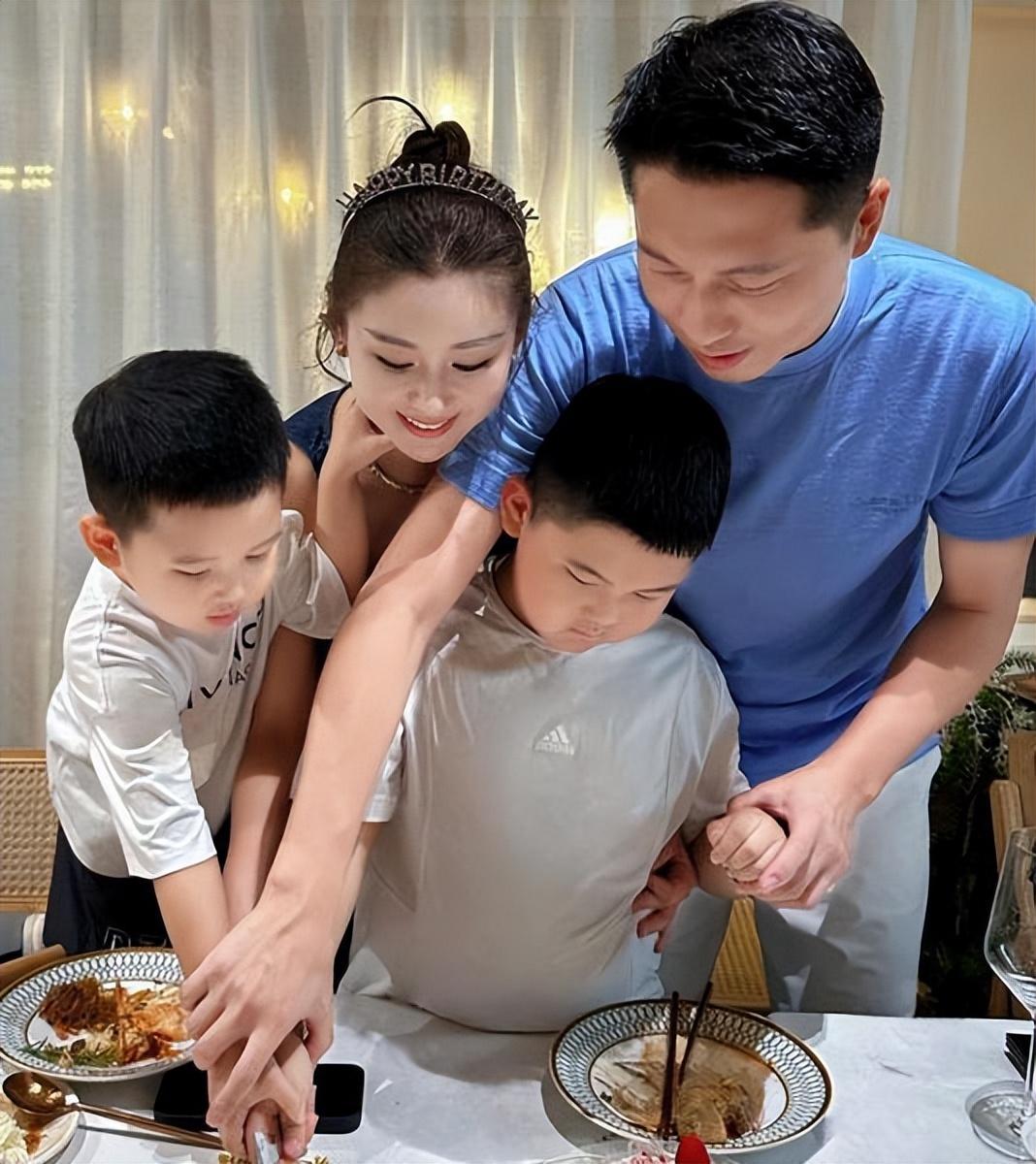 而家庭慶祝的環節更顯溫馨,一家四口圍在蛋糕前切分甜蜜,兩個兒子留着和王雷一樣的短寸頭,臉頰肉嘟嘟的,五官簡直是父親的翻版,被網友笑稱爲“迷你版王雷”。