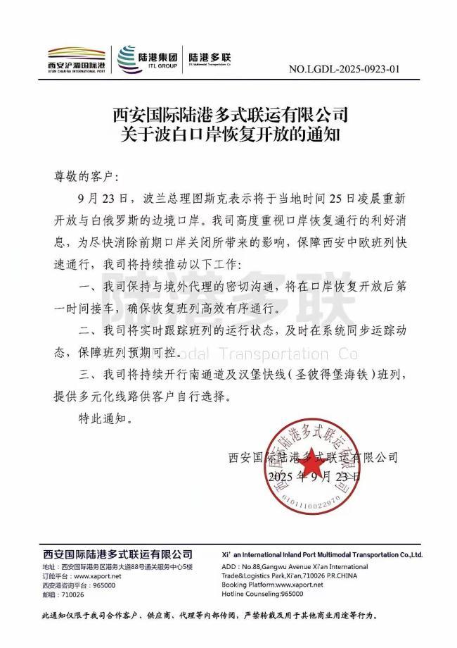 9月24日下午,波蘭總理圖斯克的聲明打破了持續12天的僵局,“將於25日凌晨臨時重開波白邊境口岸,爲滯留中歐班列放行”。