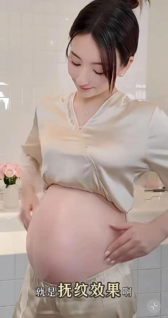 即便做着幅度不小的伸展動作,也看不出絲毫疲態,肚子圓滾滾的卻光滑得沒有一絲妊娠紋,連孕期常見的黑線都沒有。