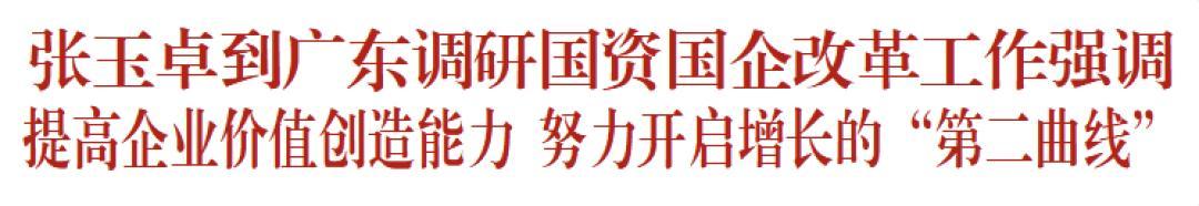 9月23日至24日,國務院國資委黨委書記、主任張玉卓到廣東深入有關中央企業和地方國有企業生產運營一線、科研實驗室調研,強調要深入學習貫徹習近平總書記關於國有企業改革發展和黨的建設重要論述,圍繞落實國家重大戰略,堅持創新驅動發展,因地制宜培育壯大新質生產力,持續提高企業價值創造能力和可持續發展能力,努力開啓增長的“第二曲線”,加快建設世界一流企業,不斷增強核心功能、提升核心競爭力,全力做好“十四五”收官和“十五五”謀劃工作,更好發揮國有經濟戰略支撐作用。