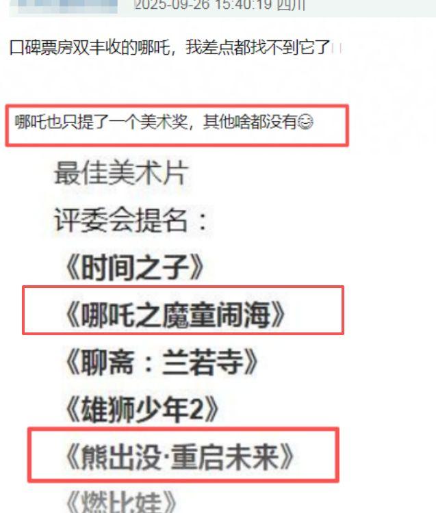 春節檔票房破百億的《哪吒2》只拿到最佳美術片提名,連主流獎項的門檻都沒摸到,這種反差實在刺眼。