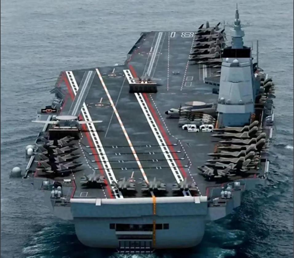 這艘新航母的排水量很可能突破10萬噸大關,部分衛星圖像甚至顯示其長度可能超越332米的福特級,直逼12萬噸。