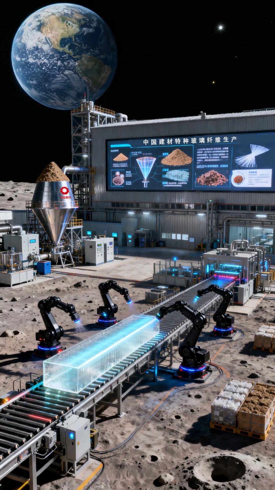 中國建材充分利用月壤資源研發生產的特種玻璃纖維材料,具備高強度、耐高溫、抗輻射等諸多優異性能,確保了結構物在月球環境下的穩定性,爲月球的長期開發與建設提供了可持續的材料解決方案。
