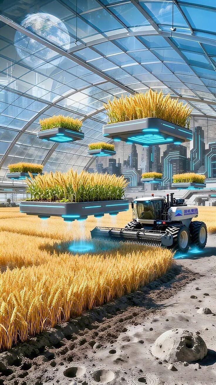 月球上的智能農場內,國機集團的智能收穫機正高效作業。它搭載精準傳感與強勁動力系統,配合磁懸浮種植平臺,快速完成作物收割,爲月球“糧袋子”的穩定供給築牢機械根基。
