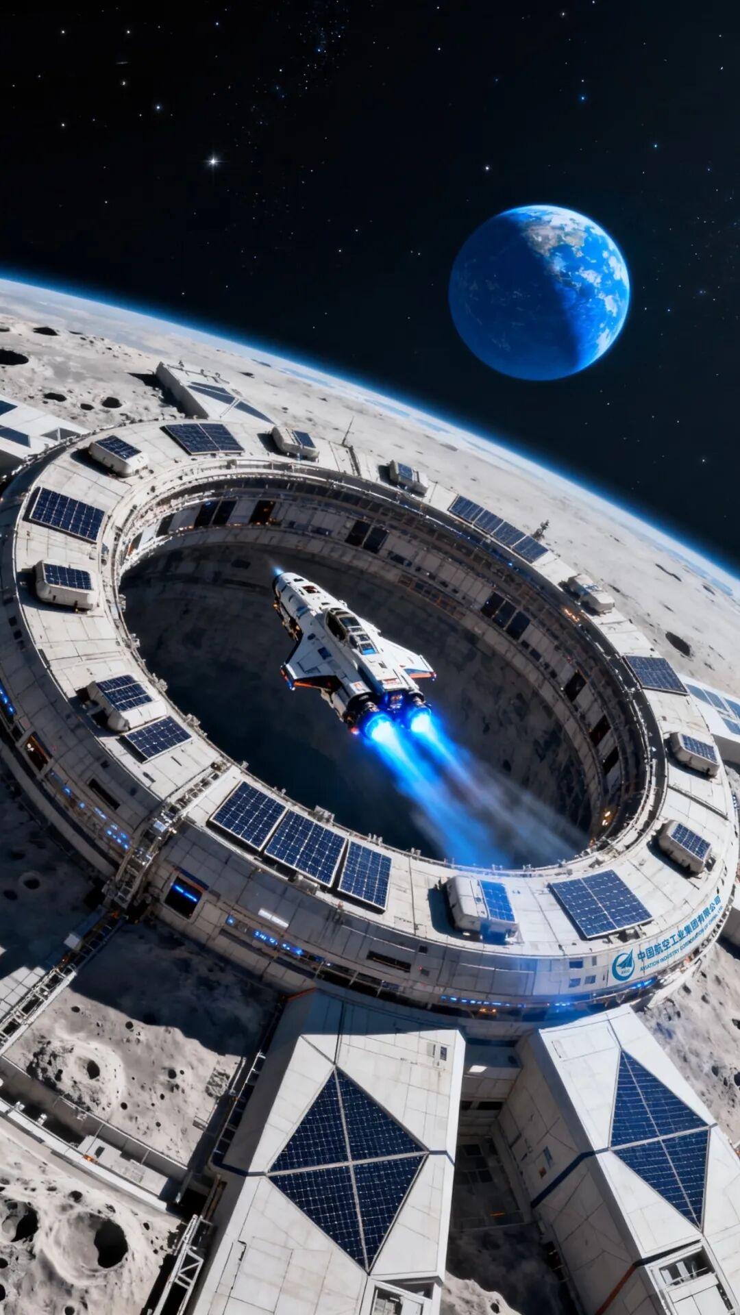 航空工業集團打造的月球環形基地高效運作,可利用太陽能板供電,助力航天器從環形基地起降,可進行月球礦物開採、深空探測、低重力實驗,爲人類探索宇宙築牢根基。