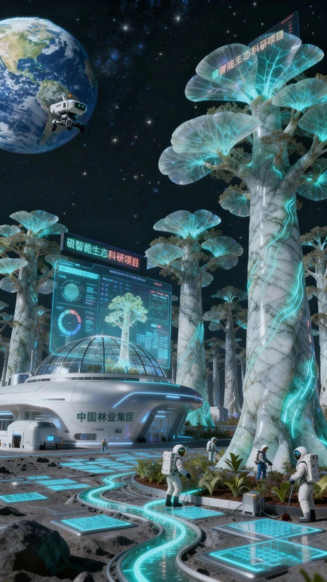中林集團通過碳智能生態科研項目,將地球造林智慧注入月球培育樹木,在月球踐行“綠水青山就是金山銀山”的理念,堅持擴綠興綠護綠“三綠”並舉,清冷的月面漸現連片綠影,昔日荒蕪之地萌發勃勃生機。