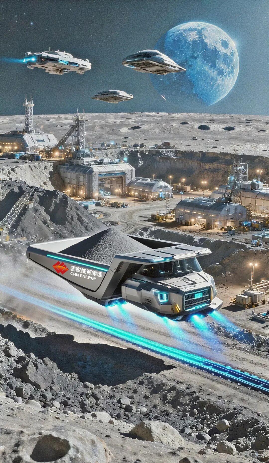月球礦區裏,國家能源集團的智能懸浮礦卡正穿梭作業。依託無人智控與新能源動力技術,它能精準適應月表崎嶇地形,高效運輸月壤資源,爲月球基地的資源開發與利用架起“星際運輸線”。