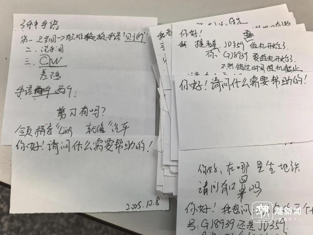 這些來自天南海北的筆跡都在告訴我們,不管是做手卡,還是用腳步丈量航站樓,繆宏傑想用一點一滴的努力讓自己跟得上普通志願者的服務水平。