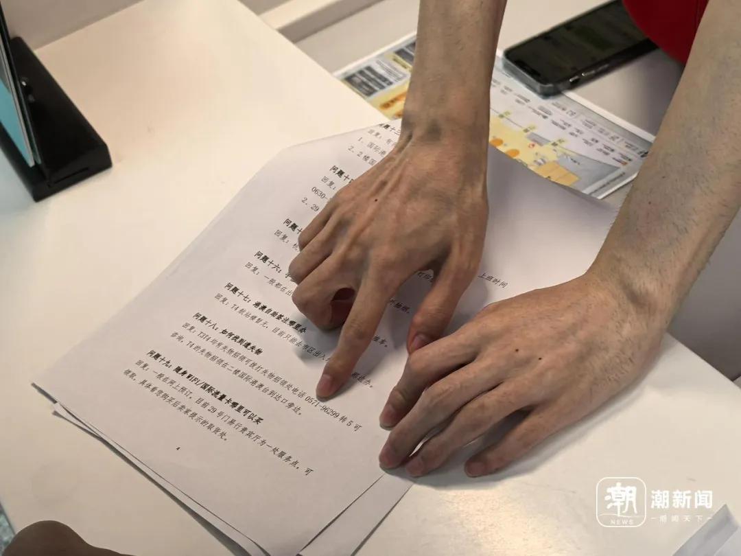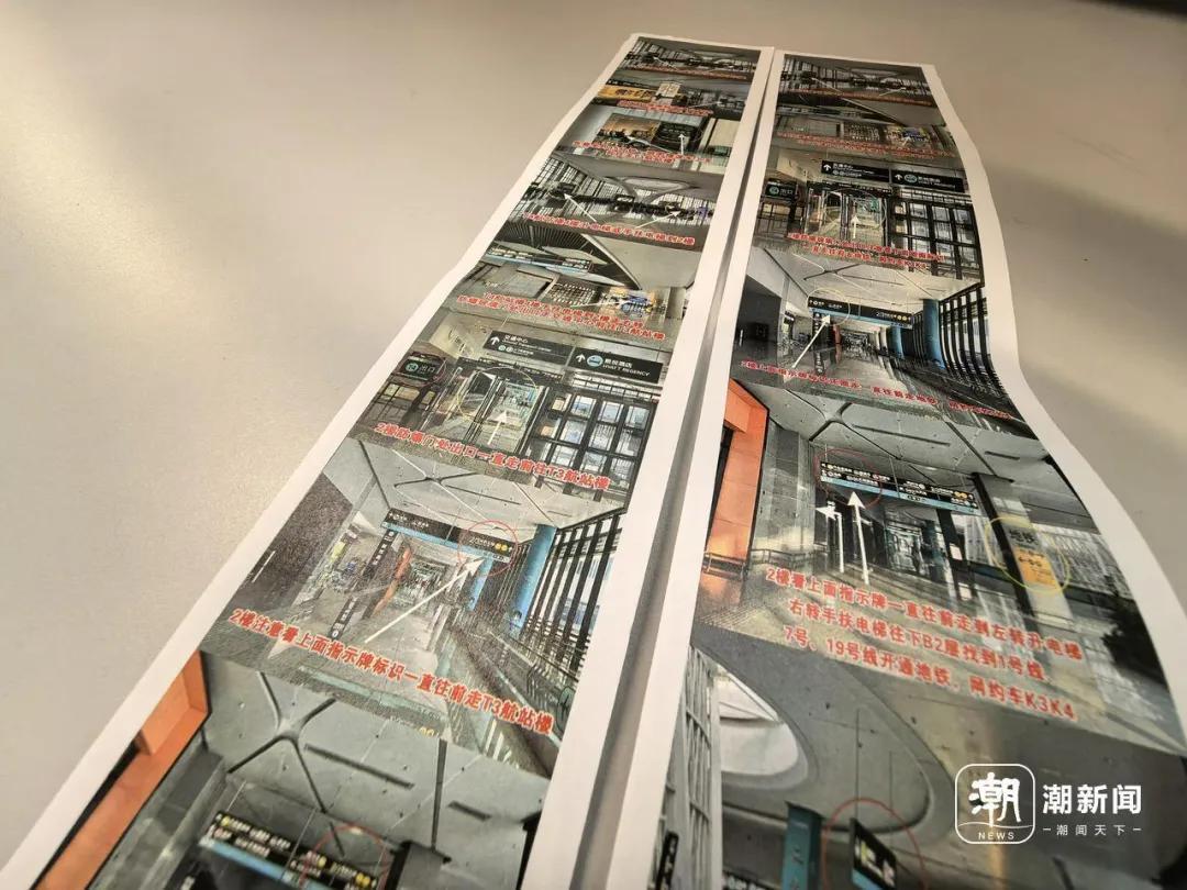 除了那疊火上過熱搜的尋路手卡外,他又在桌面上攤開了一個手寫的值機流程單、一張標註了各類注意事項的T4航站樓平面圖和一份“20條旅客常見問題”。