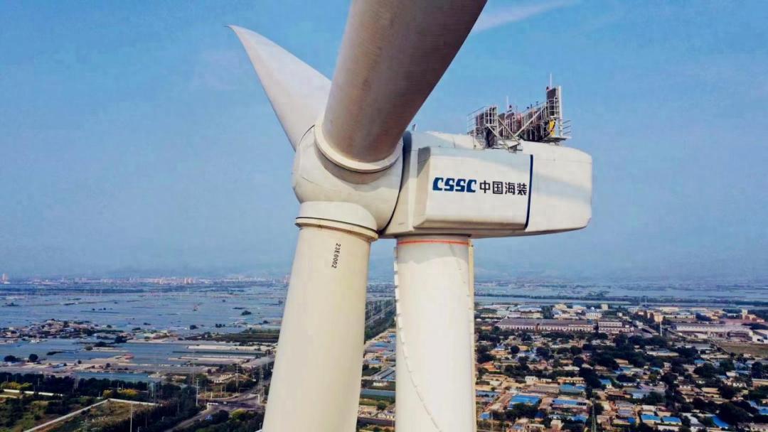 中國船舶集團旗下中船科技自主研製的全球首臺18兆瓦海上風電機組,在滿發風速下,每年可輸出約7400萬度清潔電能,滿足4萬戶家庭用電需求,相當於每年可節約標煤約2.5萬噸、減少二氧化碳排放約6萬噸。