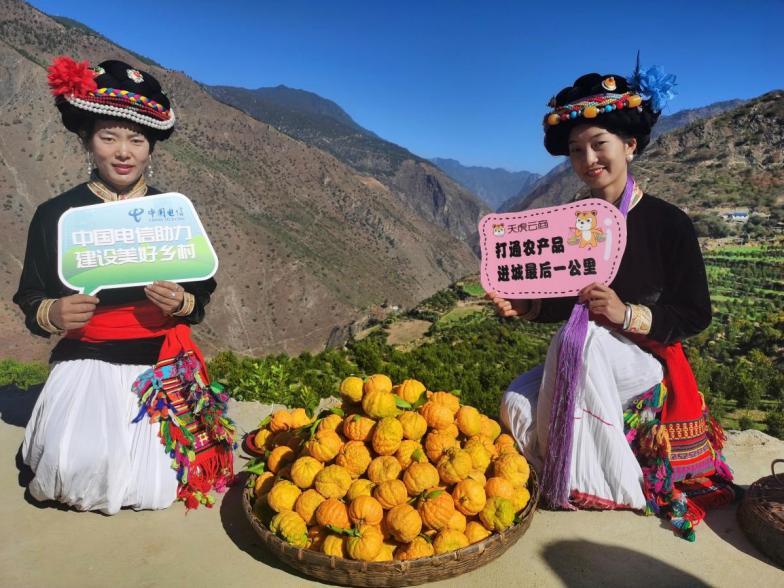 中國電信天虎雲商作爲助農電商平臺,通過直播的方式宣傳四川木裏的皺皮柑產業 中國電信供圖