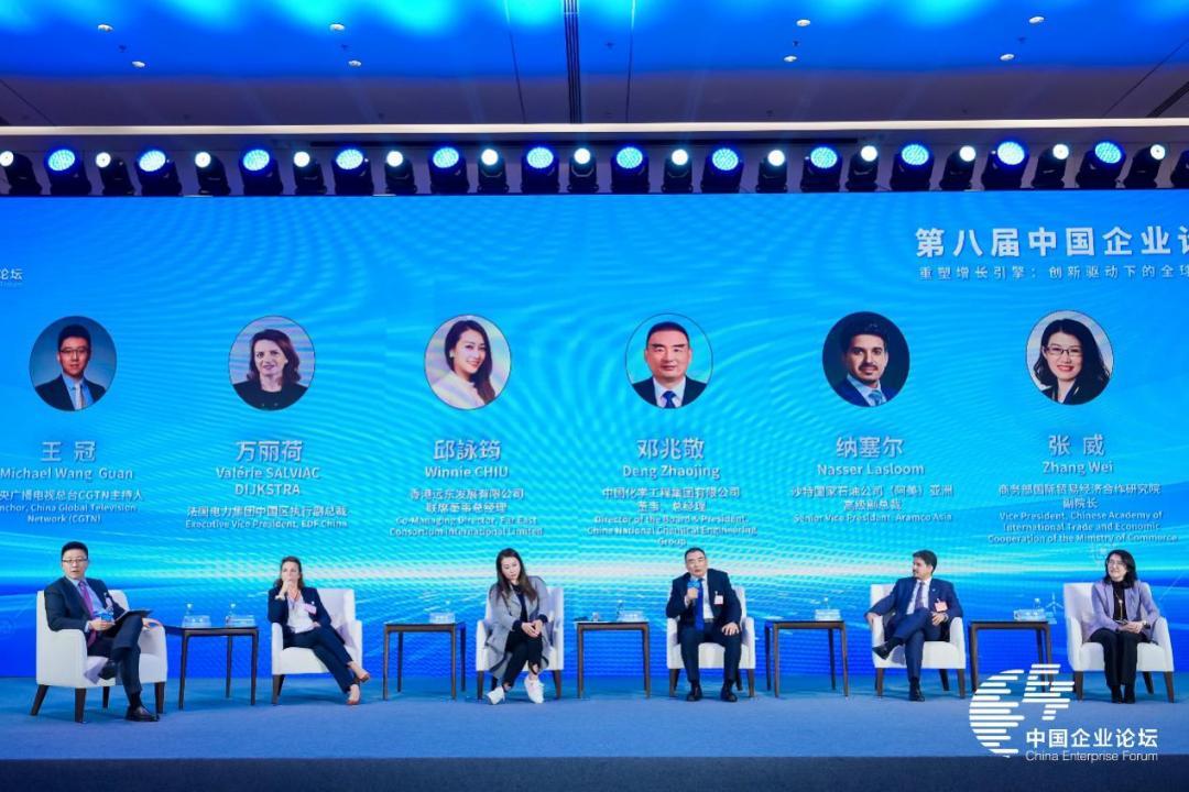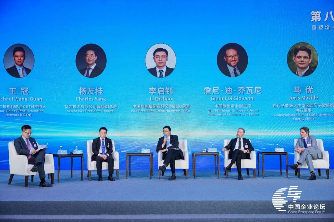 中國華能、中國歐盟商會、華爲、西門子能源有關負責人圍繞“創新驅動與企業可持續發展新路徑”議題,中國化學工程、香港遠東發展、沙特國家石油(阿美)、法國電力集團、商務部研究院有關負責人圍繞“創新開拓全球市場機遇”議題分享洞見、交流經驗,爲推動創新發展、深化開放合作、構建人類命運共同體貢獻智慧。