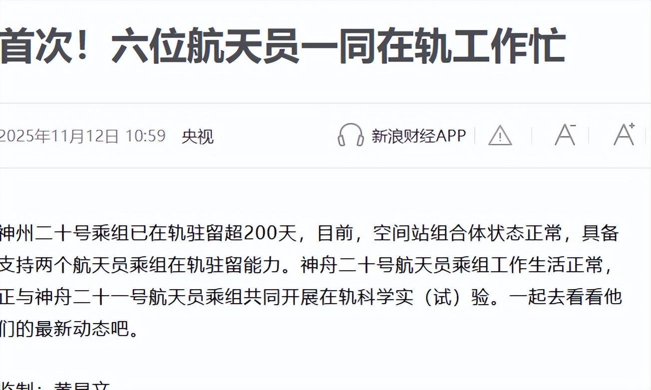 “神舟二十號乘組預計11月11日在軌滿200天”, 當中國載人航天工程辦公室的最新消息傳出,全網既爲這一即將誕生的新紀錄歡呼,也揪着一顆心。