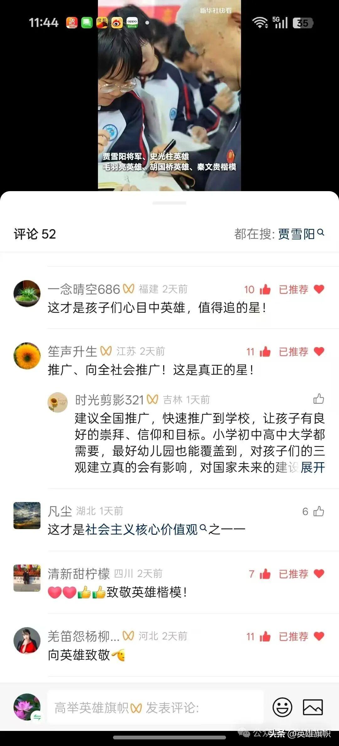 英雄旗幟微信公衆號對於阜平中學英雄楷模報告會後,學生們反響強烈,紛紛圍住英模要簽名進行了及時報道,新華社據此發佈“大型追星現場!英雄楷模受邀進校園,學生搶着要簽名”,網友的留言刷屏:“這纔是最好的思政課”、“這纔是孩子該追的星”。沒有空洞的口號,只有真實的感動;沒有刻意的煽情,只有發自內心的敬佩。