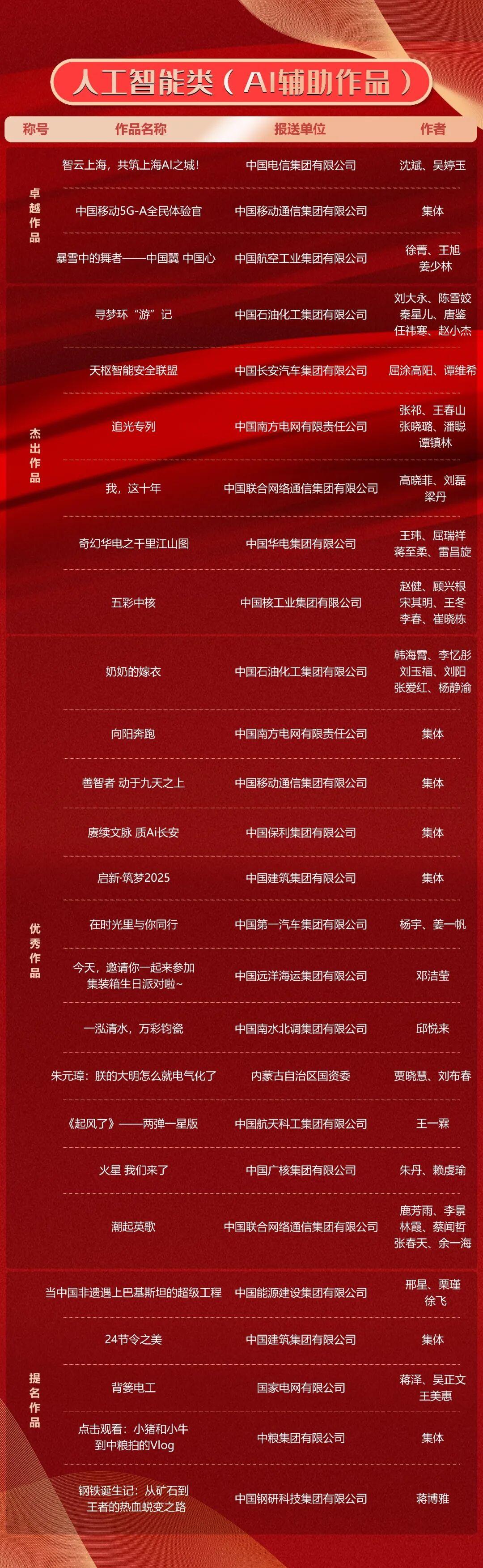 專家委員會表示,本屆“國企好新聞”徵集作品數量和質量均有較大提升,作品內容佈局結構合理,主題設置突出,話題引導有力,議題設置高度契合國有企業功能作用和改革導向。作品題材豐富、製作精良,在視頻類、國際傳播與AI應用等領域取得明顯進步。