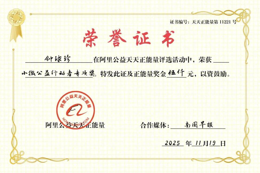 阿里公益天天正能量聯合南國早報,用我們的方式,向鍾球珍奶奶致敬。