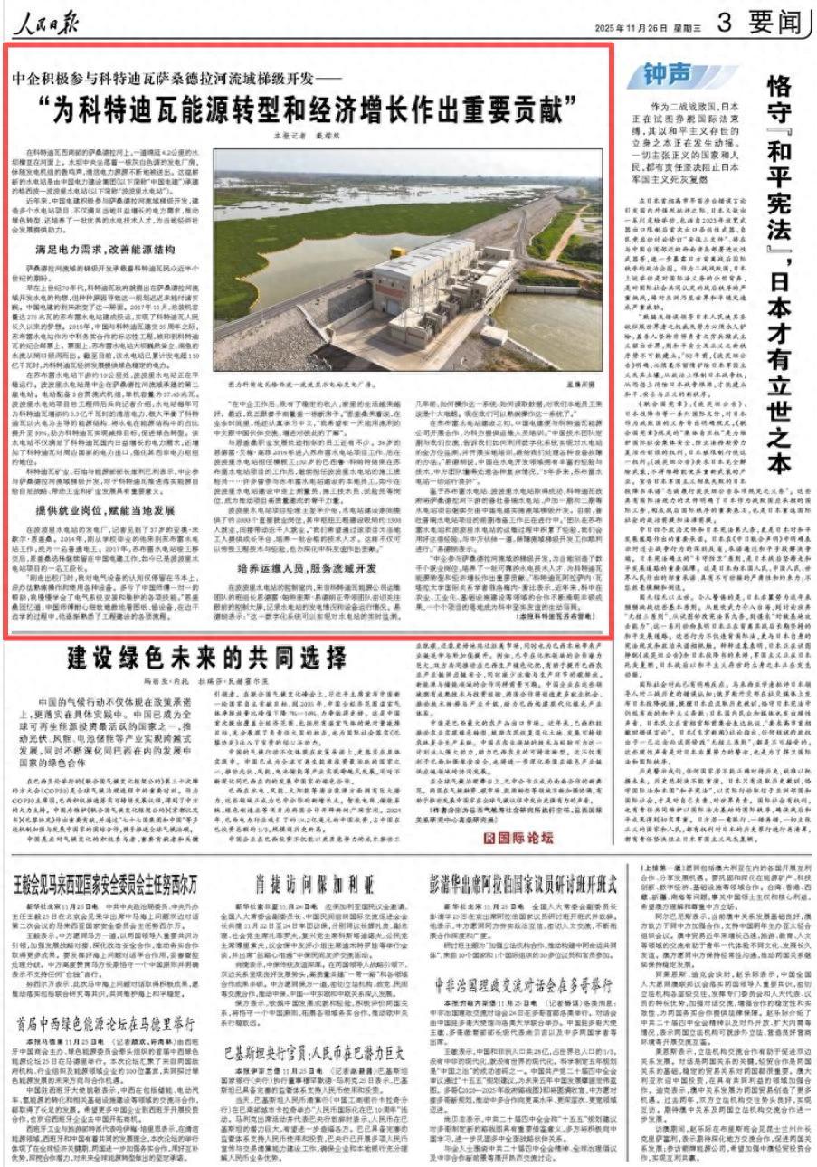 “中企參與薩桑德拉河流域的梯級開發,爲當地創造了數千個就業崗位,培養了一批可靠的水電技術人才,爲科特迪瓦能源轉型和經濟增長作出重要貢獻。”科特迪瓦阿拉薩內·瓦塔拉大學國際關係學者菲洛梅內·愛比表示,近年來,科中在農業、工業化、基礎設施建設等領域的合作不斷湧現豐碩成果,一個個項目的落地成爲科中堅實友誼的生動寫照。(人民日報記者戴楷然,部分配圖爲編者所加)