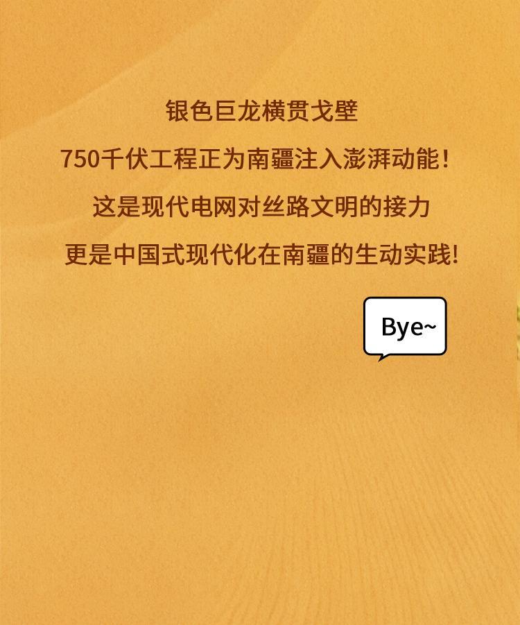 自公路、鐵路挺進“無人之海”,電網銀線織就“能源圓環”,再一次將塔克拉瑪干溫柔環抱。15年攻堅克難,沙海架起電力動脈,既納風光之能,又護胡楊生機,爲南疆發展注入澎湃動能,盡顯我國央企硬核實力與生態智慧。