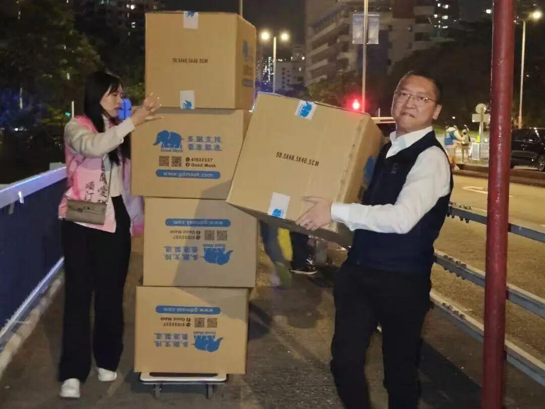 11月27日晚,火場濃煙尚未完全消散,周邊空氣中仍漂浮大量煙塵及微粒。在獲悉香港傷健協會—新界傷健中心庇護所亟需口罩後,中國石化香港代表處立即與中心聯繫確認具體需求及地點,協調調撥6000只口罩,親赴大埔火災現場交付,爲庇護中心及受災居民及時補充防疫物資保障。同時,中國石化香港公司還在距離火災現場最近的大埔加氣站設立“救援人員專屬補給站”,24小時爲消防員、警察及其他救援人員提供熱食、飲品等,持續支援一線救援人員。