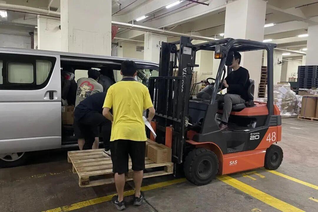 國家電網公司派駐港燈團隊志願者在現場進行救援物資運送