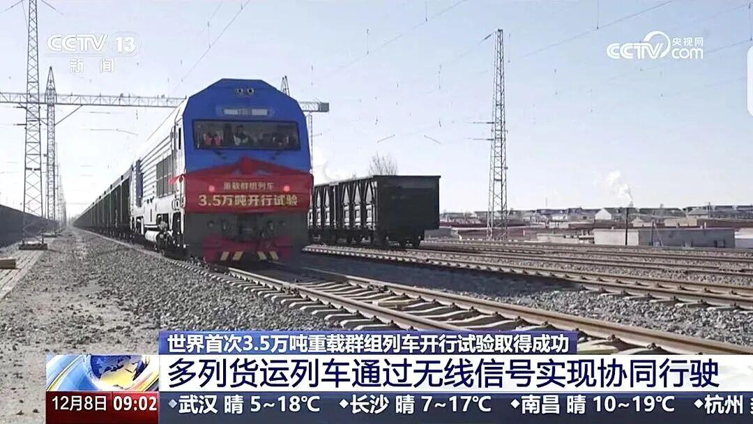 12月8日,由中國神華、包神鐵路聯合北京通號設計院等單位共同承擔的國家能源集團十大重點科技攻關項目“重載列車羣組運行控制系統技術研究與應用”取得重大突破,成功實現世界首列3.5萬噸級重載羣組列車試驗開行。此次試驗在全球範圍內首次實現多列貨運列車不靠機械掛鉤、僅靠無線信號就實現協同行駛。