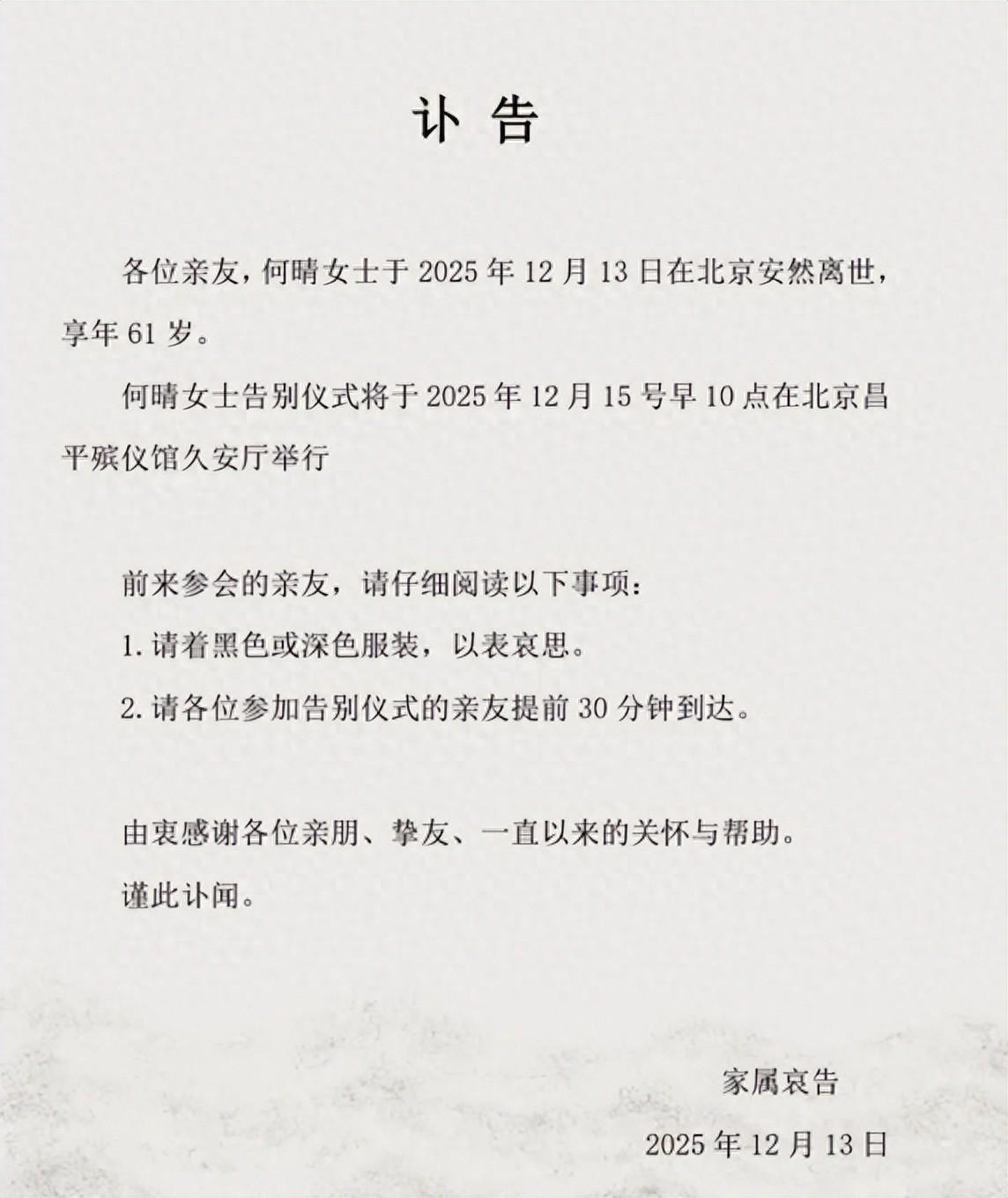 1.揚子晚報/紫牛新聞.著名演員何晴去世享年61歲曾演遍四大名著[EB/OL].2025-12-13