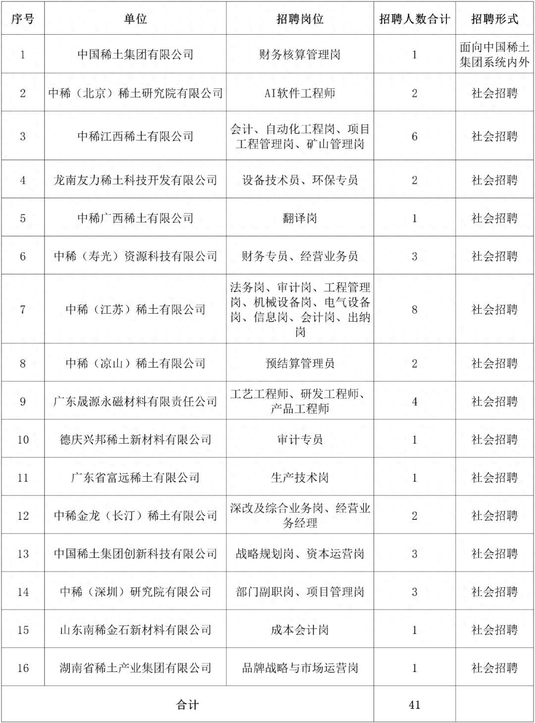 集團公司總部崗位面向中國稀土集團系統內外公開招聘;直管企業崗位面向社會公開招聘。