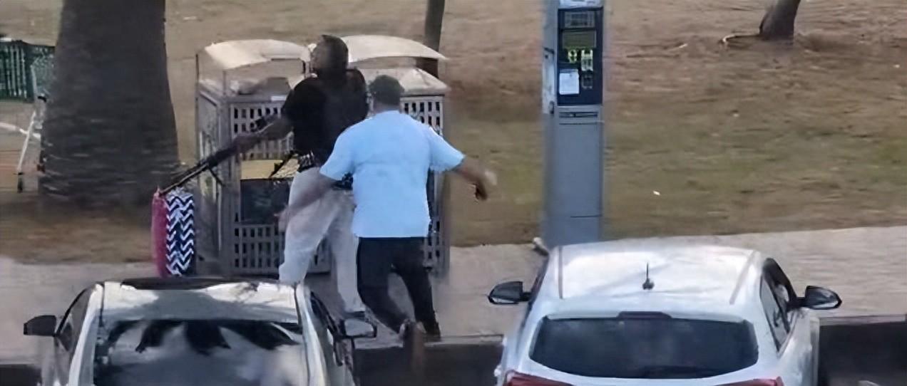 監控畫面完整記錄下這驚心動魄的一幕:50歲的槍手納爾維德・阿克拉姆正對着人羣掃射,艾哈邁德從後方迅速逼近,趁其不備牢牢抓住槍管。兩人激烈扭打,槍身不斷晃動,避開了更多無辜者。