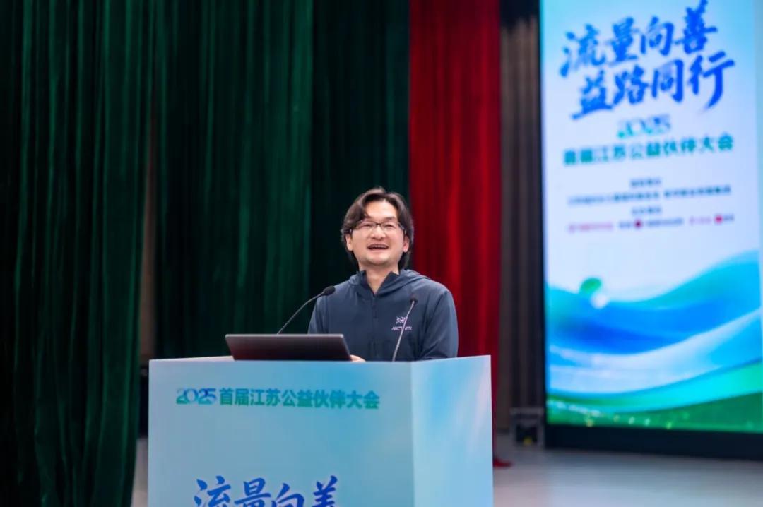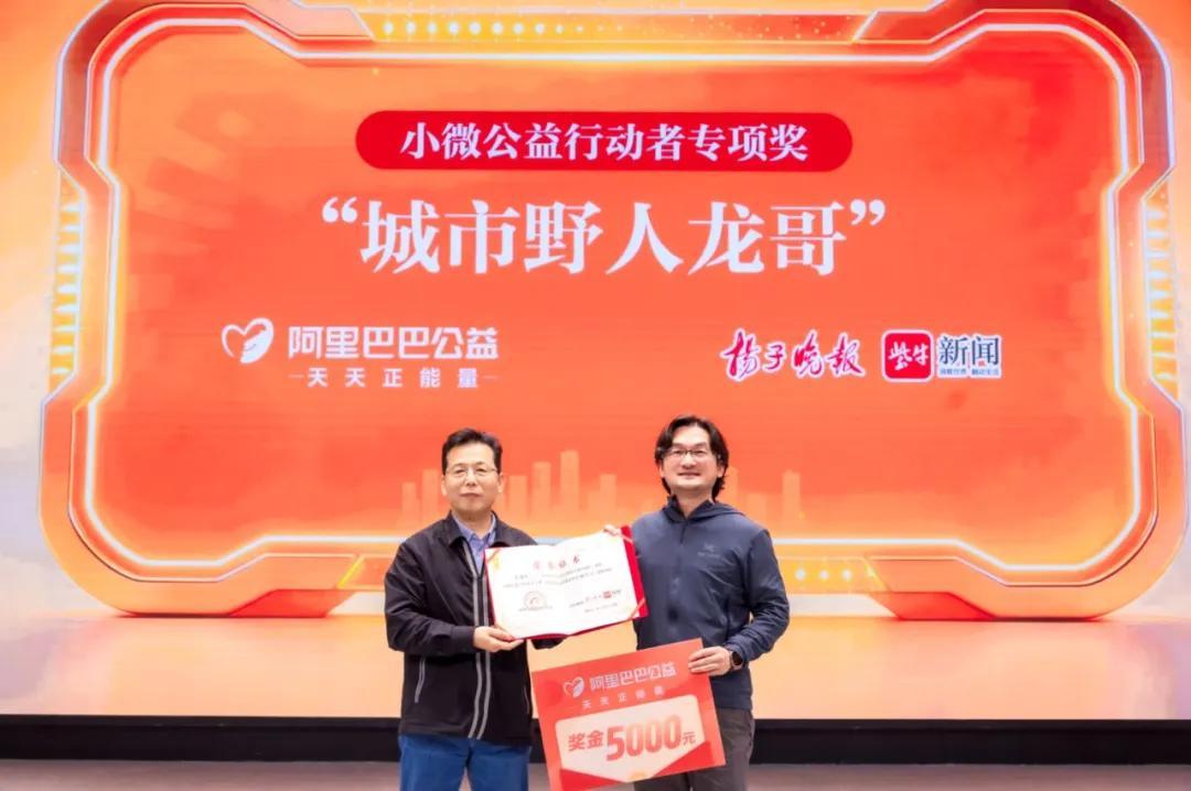 在“流量向善·益路同行”2025首屆江蘇公益夥伴大會現場,阿里公益天天正能量聯合揚子晚報/紫牛新聞,爲吳海龍頒發“小微公益行動者專項獎”。