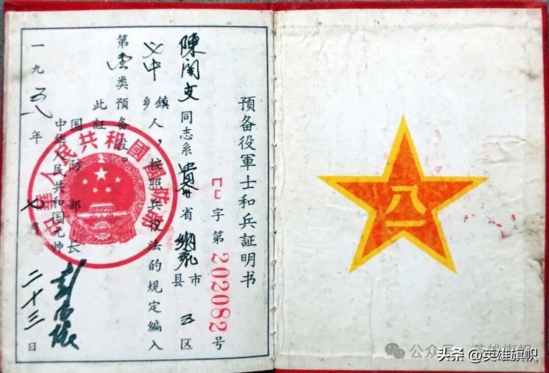 上圖:陳祥的父親陳開文的預備役軍士和兵證明書