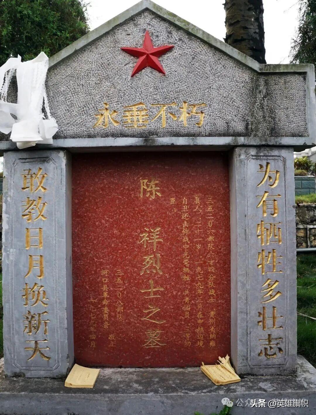 陳祥是重機槍手,子彈打完後,他去拿子彈,一個還沒有死的敵人放了冷槍,陳祥頭部中彈犧牲了。
