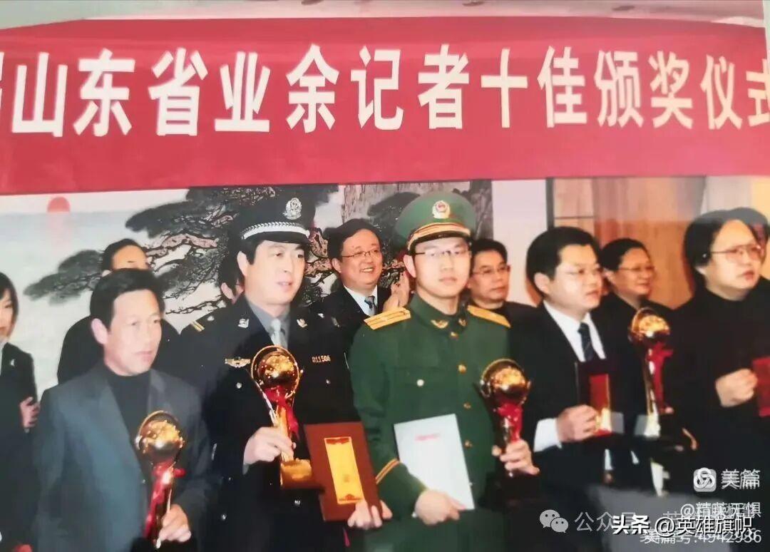 上圖:丁勇在山東省大衆報業集團會議室參加優秀記者表彰大會,作爲山東省第十二屆業餘記者十佳,上臺領獎盃和榮譽證書。