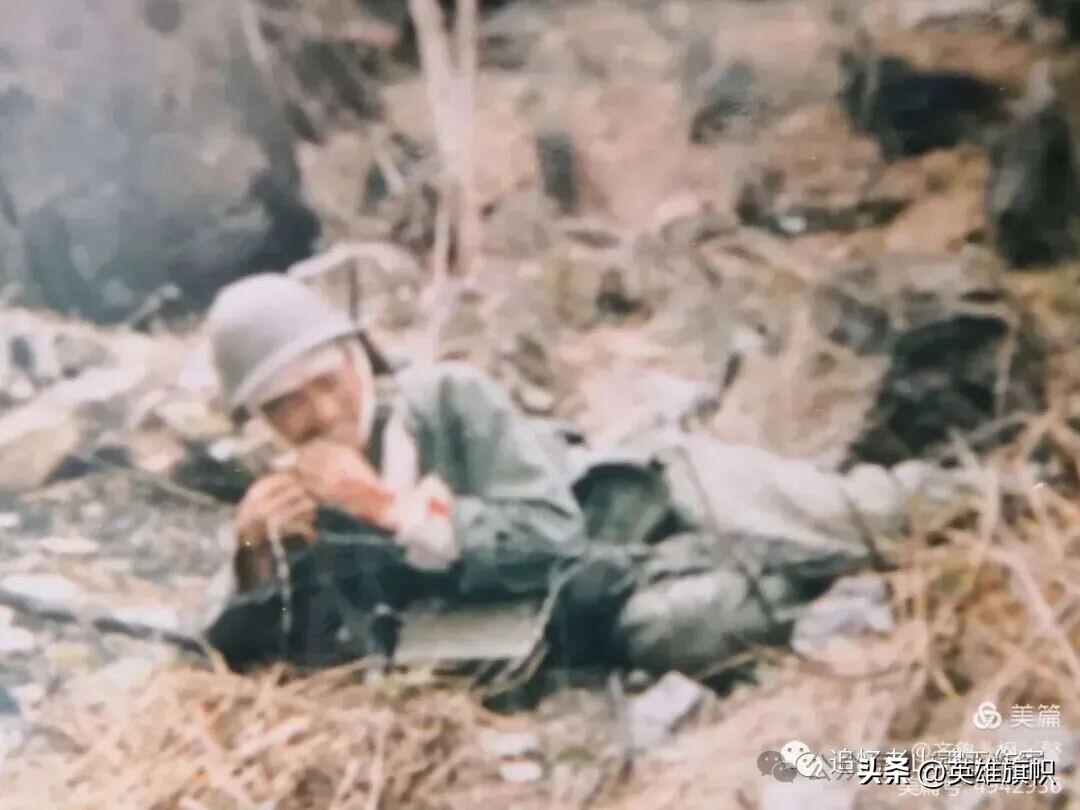 然而,這只是戰鬥開始,遠遠不到結束。8:00分,596團出擊敵968高地戰鬥打響,天崩地裂,驚心動魄。597團突擊分隊趁着我軍炮火延伸,向敵405高地發起攻擊。我又一次背起維修工具,衝向被炸斷的通信線路。這一次幸運之神沒有眷顧我,一顆炮彈在我身邊爆炸,飛濺的彈片擊穿鋼盔鑽入頭部和身體,我感到令人窒息的劇痛,鮮血從頭部、雙臂和左側大腿傷口處淌出。我咬緊牙關,強忍眩暈,先後9次冒着炮火匍匐在地爬向被炸斷的電話線,用牙齒咬開線路外皮,將兩股線路連接加固,確保恢復線路暢通……
