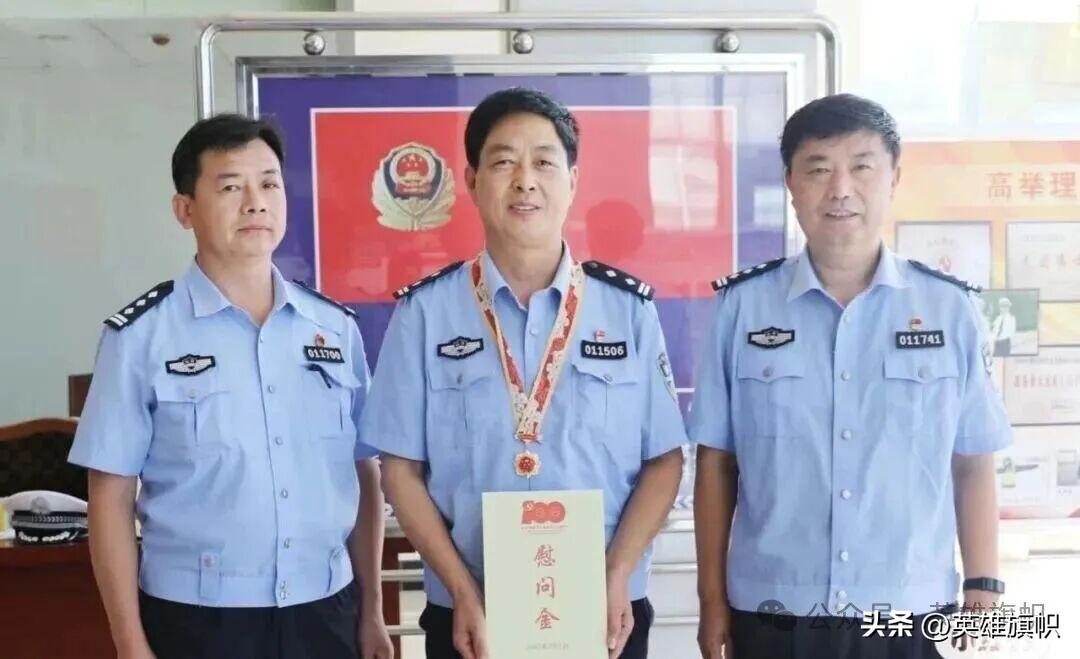上圖:建國70週年接受時任濟南市公安局交通警察支隊章丘大隊李德軍政委和宣傳科許宏兵科長慰問合影。