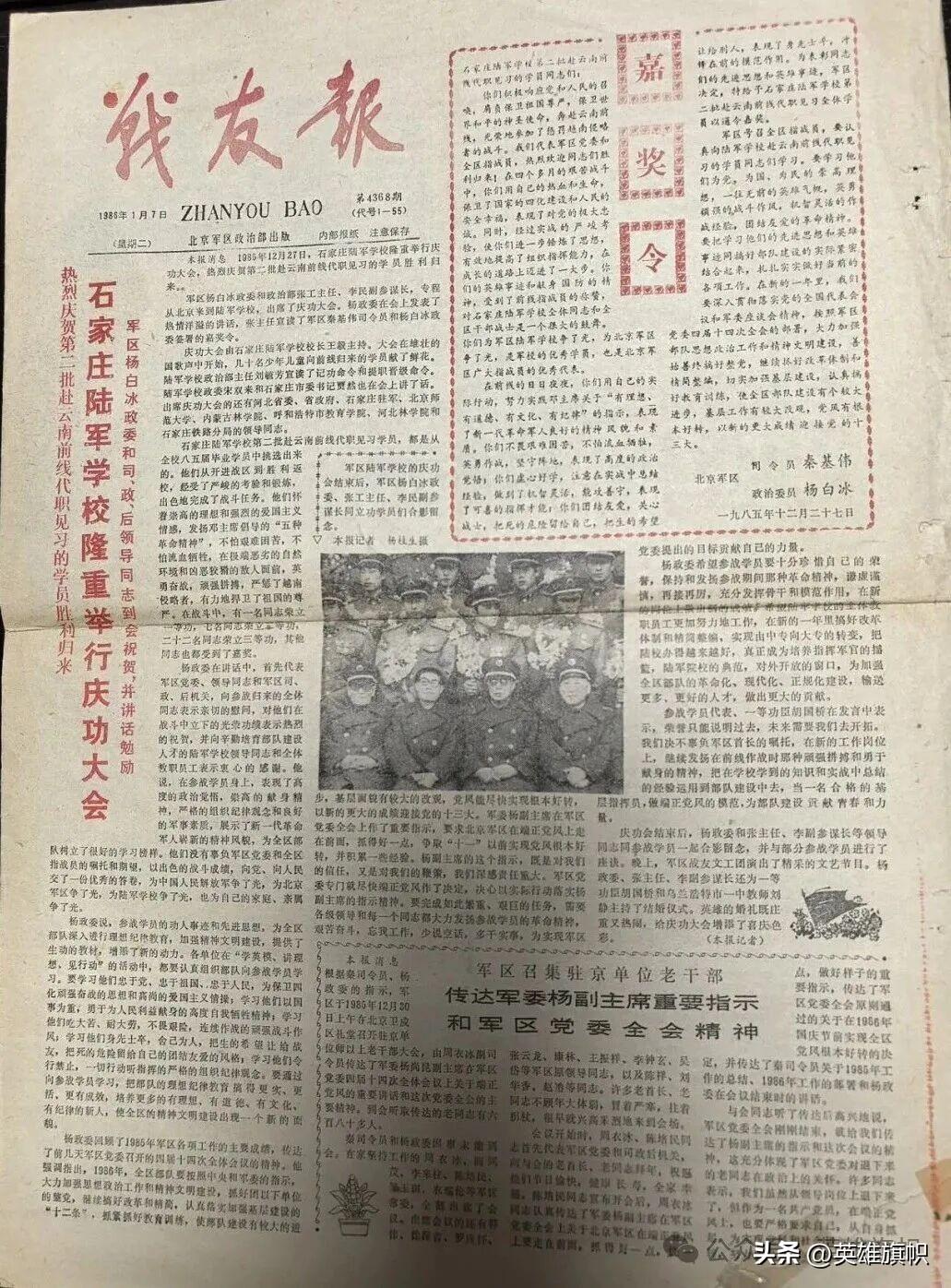 40年前的今天,1985年12月27日,石家莊陸軍學校隆重舉行慶功大會,熱烈慶賀雲南前線代職見習學員勝利歸來。軍區首長專程從北京來到陸軍學校,出席了慶功大會。