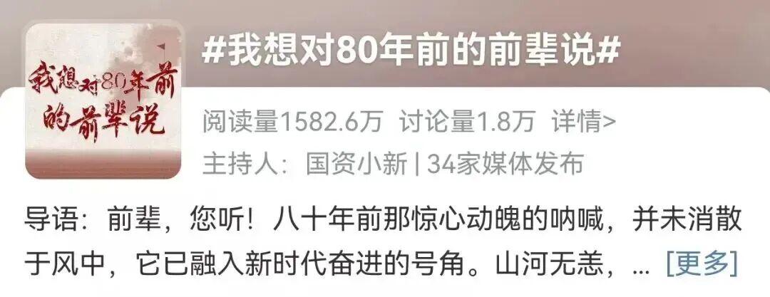 在日本宣佈無條件投降80週年紀念日,@國資小新 發起#我想對80年前的前輩說# #沒人比我們更懂從弱到強# 雙話題,號召中央企業通過今昔對比,展現中國從戰火廢墟中崛起爲世界強國的艱辛與榮光。