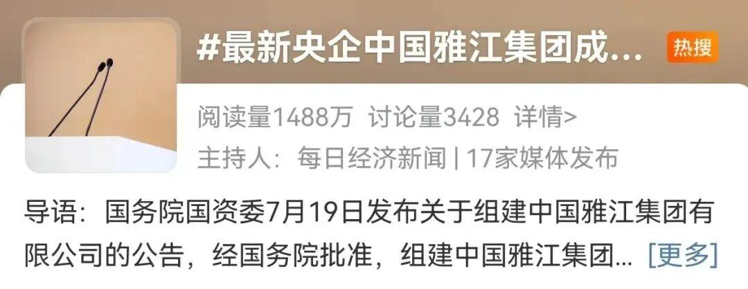 7月,中國雅江集團有限公司成立大會在京舉行,中共中央政治局委員、國務院副總理張國清出席併爲公司成立揭牌。