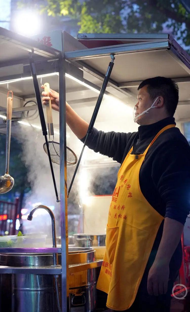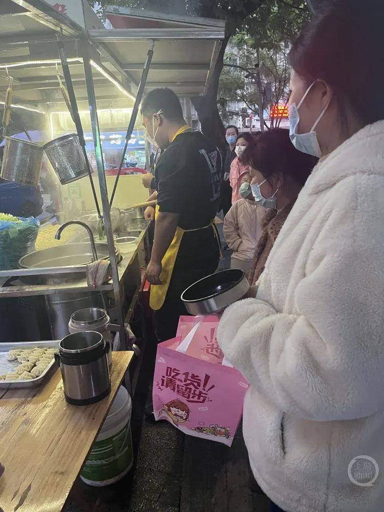 有路人即使不買,也會對着正在煮抄手的潘啓強比一個“勝利”的手勢:“加油啊,俊宏爸爸!”