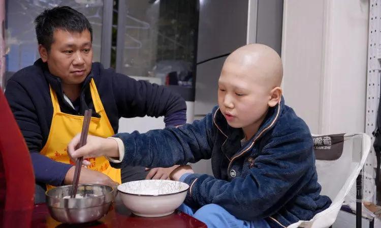 有一次化療完,爸爸帶他去喫最愛喫的串串香,還只能喫兩串。孩子仰起頭突然問:“爲什麼我的命這麼苦啊?”語氣像個大人一樣。